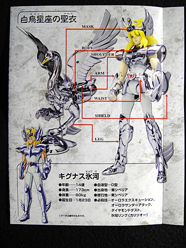 聖闘士聖衣神話 キグナス氷河(最終青銅聖衣) 聖闘士聖衣神話が欲しくて色々調べてたら、最新の聖闘士聖衣神話EXで、青銅メンバーでは氷河だけが未発売だったので、いつか出るだろうと待機するつもりだったんですが・・・ぶっちゃけ、今!欲しいんだよ。再熱してる、今!ってことで、買ってしまいました。 聖闘士聖衣神話 キグナス氷河(最終青銅聖衣)※2006年3月発売新品で定価プラス200円くらいでした。発売から年数経ってますが、こちらは比較的良心的な値段で新品を手に入れられるっぽい。外箱にスレ傷があったけど、聖闘士聖衣神話は組み立てないと飾れないので無問題。※FFのプレイアーツや薄桜鬼のリアルフィギュアは、地震と埃が怖いため、基本的に箱に入れっぱなしです(苦笑アニメ聖闘士星矢では、星矢達の聖衣が何度かモデルチェンジをしておるのですが、これはハーデス編で着た「最終青銅聖衣」版になります。今、展開しているブランド聖闘士聖衣神話EXの方では、青銅メンバーはアスガルド編で着た「新生青銅聖衣」版で展開してるみたいなので、EX版の氷河が出たら、これはこれで買ってしまうんだろうな(遠目となると氷河の「初期青銅聖衣」も好きだから、それも欲しいんだけど、「初期青銅聖衣」版は、今回買った奴よりも後に発売されてるのに顔が微妙なんだな。他は完璧なのに顔だけ似てないとか解せぬ。でも欲しい(ォィちなみに11月に『キグナス氷河 神聖衣 10th』が出るという事で、予約開始の段階で瞬殺されたものの、奇跡的に某店舗で予約出来たので、無事入荷されれば、これもゲット出来るでしょう(結局買うんかい・苦笑飾るスペース空けて待ってますねwさて、ここから先は今回買った「最終青銅聖衣」の画像&簡単な感想でも。長いので閉じておきます。続きからどうぞ。聖闘士聖衣神話 キグナス氷河(最終青銅聖衣)posted with amazlet at 13.08.18バンダイ (2006-03-25)売り上げランキング: 5,119Amazon.co.jpで詳細を見る まずはパッケージ。中を開くとこんな感じ。 アクエリアス氷河用のヘッドパーツが付いてますね。氷河の師匠(アニメでは師の師・笑)水瓶座のカミュの聖闘士聖衣神話があれば、頭部を取り替えるだけで、アクエリアス氷河が再現出来ちゃうんですね。…氷河さん、我が師カミュも買えって言ってます?いくら氷河さんが師匠コンとはいえ、それは無理ですよ(笑 聖闘士聖衣神話はオブジェ形態で飾る事も可能。ですが、自分細かい作業苦手&オブジェ形態で飾る気無いのでココは省略。 素体の状態。聖衣着せる前提で作られてるのでヒョロヒョロですw 聖衣装着!ダイキャスト製なので重量感あります。スクエニのプレイアーツに比べると関節が緩い印象がありますが、平らな所であればちゃんと立ちます。ポロリの心配も無さげ。ちなみに台座は付いてません。無くても立ちますが・・・これ地震来たらアウトじゃね?(苦笑安全の為にも別売りの台座を購入しようと思います。聖衣ってこうなってんのかー、と一つ一つのパーツを組み立てていったんですが、そういえば原作では最初の頃は、星矢たちも手動で聖衣を着ていたので、アニメ化→自動装着式になって良かったねぇ、と思いました(笑最初、「新生青銅聖衣」と「最終青銅聖衣」の違いがよく分からなかったんですが、一番変わったのは腰パーツが復活した所ですかね?ベルトのみよりも、腰パーツは有った方がカッコいいと思います。ただ、この形態だと一番大事なところが守れていないような気もするけど(笑 顔パーツ。まずは通常バージョン。 頭パーツ無しバージョン。氷河さんの場合、やっぱおまるパーツあった方が落ち着くなぁ(笑 包帯有りバージョン。ハーデス編では包帯してたので、これで飾るのがシーン的には合ってるのかなぁ。写真だと、どこ見てんの?って感じで伝わりにくいと思いますが、包帯顔の方が目がキリッとしてて凛々しい気がします。 フィギュアとしては、クオリティ高いです。顔や髪型の造形も綺麗だし、実物は見ていて惚れ惚れします。流石、氷河さん。美しいです。 子供の頃から、キグナスの聖衣の左腕に、さりげなく盾が付いてるのがカッコいいなぁと思ってました。まぁ、盾といえばドラゴン紫龍の特許みたいな感じだし、氷河自身もあまり活用してなかった気がしますが(笑私的にはフィギュアは基本観賞用なので、可動・非可動問わないのですが、可動式だと自分でポーズを決められる、名シーンを再現出来るのは楽しいですね。 [0回]PR
