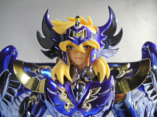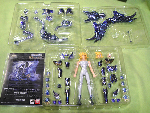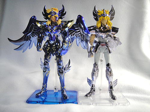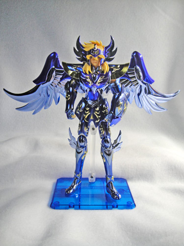聖闘士聖衣神話 キグナス氷河 神聖衣(10th) ※画像は全てクリックで拡大します聖闘士聖衣神話 キグナス氷河 神聖衣-10th Anniversary Edition-丁度再熱した時期に、予約が始まったので買おうか迷っていたら、密林を始めとする有名ホビー店では予約開始早々に完売してしまい、聖闘士聖衣神話ってプラチナチケット並に入手困難なの!?とビックリ…Σ( ̄Д ̄;)でも、諦めきれずネットで検索していたら、少し遅れて予約受付を開始したお店を発見。迷ってる暇は無いなと思って、そこで予約してしまいました。そして入荷数減数によるキャンセルもなく、無事発売日にゲット(ほっ こちらは外箱裏面。ホントにどこのお店も入荷数が少なかったみたいですね…。メーカーももう少し出荷数や販売方法とか考えて欲しいな…。 中身はこれで全部。顔パーツはノーマルと包帯と叫び顔(包帯ver.のみ)の3つ。 素体。前回買った最終青銅聖衣では関節が緩々だったんだけど、こちらは丁度良い固さでした。 神聖衣装着。台座は別売りです。青が合うだろうと思って購入したけど、うん、イイ感じです。コレ、組み立てるのパーツが多くて大変でした。右足のパーツが奥まで刺さらずグイグイしてたら、根元から片脚が外れてしまってだな(苦笑押し込んだら直ったけど外れ易くなってしまったみたいで、組み立て途中でまた外れたんだよね。orz流石にちょっと泣きそうになったよ・・・もう怖くて触れない(苦笑 現時点で出てる氷河さんマイスの中では、一番の美人さんじゃないでしょうか。髪色は薄黄色でOVA以降の色に近いですね。 青い神聖衣が美しくてだな、見てるだけで満足。アニメカラーでもない、原作カラーでもない、10thオリジナルカラーですが、紫寄りの深めの青で、凄くキレイな色です。ゴールドの模様も栄えます。キグナスは翼をモチーフにした胸パーツがカッコイイ。最終青銅聖衣と並べてみました。神聖衣の方が少し背が高い?やはり飾るなら色が付いてる物の方が栄えるなぁ。(;゚∀゚)シルバーも白鳥らしくて良いんだけどね。聖闘士聖衣神話 キグナス氷河 神聖衣 -10th Anniversary Edition-posted with amazlet at 13.11.25バンダイ (2013-11-23)売り上げランキング: 231Amazon.co.jpで詳細を見る [0回]PR