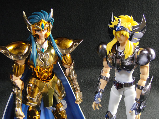 聖闘士聖衣神話EX アクエリアスカミュ 買ってから、ずっと放ったらかしにしてたコレ。 やっと組み立てました。黄金聖衣はパーツが多いので重量感凄いです。。。 「わ、我が師・・・カミュ!」シベリア師弟、やっと感動のご対面だよ・・・ アニメ版は二の腕のパーツ無いんだけど、一応マイスでは付いてるのね。あった方が見栄えは良いよね。ってことで付けてる。マントもあった方が見栄えが良いので・・・若干つっかえ棒代わりにもなってますがw推し黄金はミロ様ですけど、黄金聖衣の中で一番デザインが良いなと思ってるのは水瓶座です。あまりゴツゴツしてないし、全体的にもバランスが良いです。この聖衣を将来、氷河が受け継ぐと思うと胸熱です・・・////マイスの組み立ても、4体目で少し慣れてきましたが・・・黄金神聖衣ver.は苦戦しそうで今から恐怖(苦笑それ以前に予約戦争に勝たなければいけませんが・・・その前に、9月には原作ver.のミロ様が我が家にやってくる予定です。もう飾るスペースが限界なので、フィギュアは卒業したいところなのですが・・・あぁ、やっぱEXアイザックは欲しいなぁ・・・出してください、期待してますw [0回]