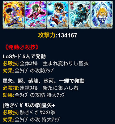 聖闘士星矢 ギャラクシーカードバトル(45) LoS祭り後半戦も、青銅4人ゲットして覚醒してきました。 ボーナスミッション五日目、紫龍さん。紫龍さんは覚醒後もカッコ良くて、一番出来が良いと思うよ。 ボーナスミッション六日目、瞬ちゃん。ミッションがキツくなってきたから、バザーにしようかとも思ったけど、ボーナスミッションをやることで、デイリーミッションもついでにクリアできるので、結局ゲットしたという。。。早く本命を〜とソワソワする時期w ボーナスミッション七日目、ついにキタ本命・氷河さん。夜しか集中してINできる時間が無いから、夜のうちに穫ったんだけど、また戦友さんから「もう覚醒してる〜流石!」て言われちゃったよw正直、覚醒前の方が好きなんだけど・・・こうやって見ると、やっぱカッコいいな♡リダカ用コレクションの為、覚醒前もバザーで買わないとな。 ラスト・一輝兄さん!これは苦戦した!超強敵Lv.100以上でMVPを3体、のミッションなんだけど、その超強敵が出て来ないの(苦笑公式板でも言われてたけど、めっちゃ運営に操作されてるわ、絶対。出て来てもレベル500(最強)ばかりでイジメだろ・・・と思った。orz結局、応援要請で他から飛んで来たレベル100と300を狩らせて頂きました。てか、超強敵は争奪戦になってましたね。応援要請では、いっぱい飛んできたけど、あっという間に狩られて行くという…。夜の11時頃からINして、終わったの夜中の3時。orz翌日休みだったのが幸い。そして、なんだかんだで寝ようと思ったのが4時過ぎ。しかも、寝ようと思ったら地震くるし、なんだったんだ、一体・・・orzとりあえず、LoS祭りも、あとはデイリーミッション残り1日をクリアして終わりっすね。はぁ、長かった〜。次はGBなのに、もう燃え尽きてるんですがww 最初にタダで貰ったLoS星矢ちゃんを入れても連携が出るときいたので試してみました。LoS星矢ちゃんステ値弱っ!って思ってたけど、よくみたら、攻撃力に関してはLoSアテナと大差ないので、攻撃デッキでLoSを組む時は、センター星矢ちゃんでも良さげですね。でもこの星矢ちゃんの絵柄あんま好きじゃ・・・(ry他の青銅ちゃんが強いから、そこで基礎値はカバー出来てる感じ。総合的には、全て限界突破すれば、私が今使ってる通常の青銅ちゃんデッキと変わらないので、あとは発生する連携の威力と星矢の技レベル次第ってところか。星矢ちゃんの技が「全タイプの攻アップ」だから使い勝手はLoSの方が良いけどね。でもこの星矢ちゃんの絵柄あんま好きじゃ・・・(ry若干、今のデッキに飽きて来てるから交代で使うのもアリかな。そのためには各カードを限界突破しないと駄目だけど…デッキの基礎値の強さが10万超えちゃうとね、今以上のモノを求めてしまうので、なかなか他のデッキに切り替えって難しいです。f^^; [0回]PR