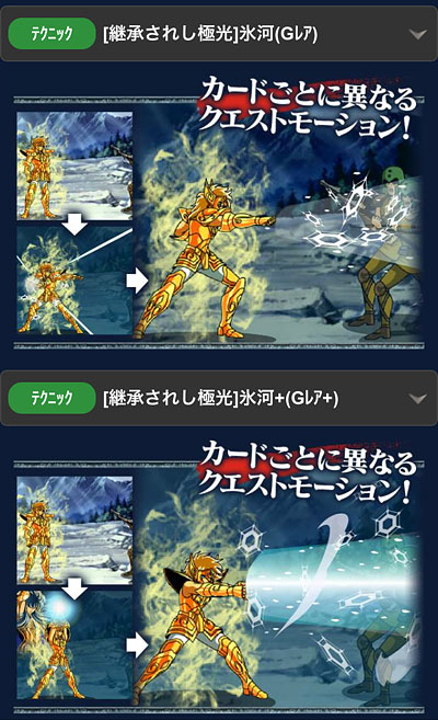 聖闘士星矢 ギャラクシーカードバトル(46) 何となく予想はしていたけど、GB特攻でGR氷河ガチャきたーーーーー!ってことで、今まで溜めて来たガチャチケ10枚、突っ込んでみたけど出ませんでした。orzステップアップガチャということで、さらに1周してみたけど出ませんでした。orzうん、わかってた。出ないって分かってた。でも、氷河ファンとしては、回さずには居られないじゃん?w・・・。・・・。・・・。・・・はぁ。(´Д`||) 覚醒後の氷河さんカッコイイ//// その聖衣で、そのポーズですかwあ〜やっぱ欲しいなぁ。でもGB特攻だから、バザーでも凄い高いんだろうなぁ・・・(´Д`||)コツコツ修復溜めるか・・・?でも、そろそろ、私、氷河破産するよ・・・?(´Д`||) [1回]PR