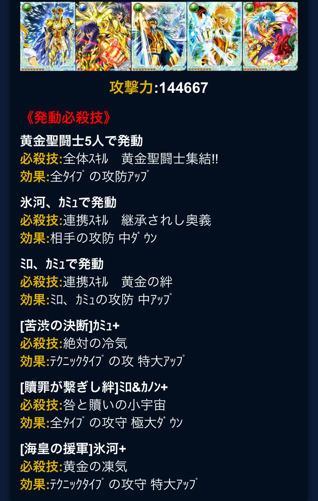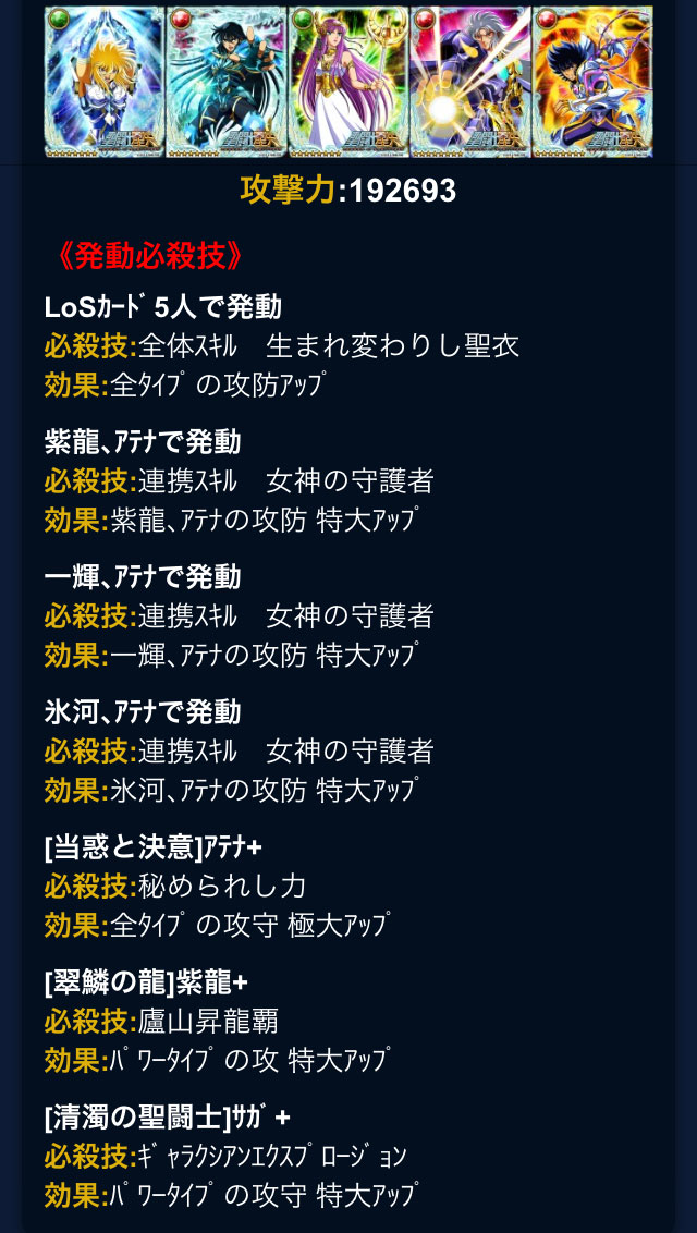 聖闘士星矢 ギャラクシーカードバトル(50) 7月30日で、プレイし始めて1年経ちました。INした時ガラケーだったのでスクショ撮れず・・・ってことでコチラの画像が証拠ということでw元々、星矢再熱してスグ、氷河さんの美麗カードが見たくて始めたんだけどさ、無言軍や臨時軍に居た時はテキトーにやっていたので、本格的にやり始めたのは今の軍に入ってからですね。なので、1年もやったって感じがしないんだけどwそんな自分が、今じゃ副将ですよ。よくわからないですよw あと少し前にログインルーレットで「S」が来ましたねー♪前に当たったのはいつだったか・・・覚えてないやw LoSカードのバザーが解禁されたので、制服アテナを購入しました。高かったので自分で覚醒して限凸しました。1枚穫ってて良かった〜wそして、アテナ以外は、バラまき効果で値崩れしていたのでww青銅ちゃんたちも限凸に買い替えて、サガ・リアもゲットしちゃいました。ホントはGB特攻氷河さんが欲しくてコツコツ溜めてた修復だけど・・・でも解禁日は凄いお高くなりそうだし、どう見積もっても無理だなと思ったので、次のGBに向けてLoSデッキ作ることにしました。私にはGB特攻はまだ早いってことだな、うん・・・(´ー`) アテナ+青銅4人デッキ。揃うとやっぱ素敵ですねぇ。でも、何だろう、この教科書通りにやりました感・・・(そして主人公どこ行った?w何だかツマラナイな、と思ったので、 攻撃力が低めの瞬ちゃんをやめてサガにしました(サガも好きだし♪アテナと並べるとこれはこれで十二宮編再現のようで様になる。これで基礎攻撃力11万超えです。そして、GWで試したら、技上げしてない状態なのに攻撃力19万出た!wやっぱ、LoSデッキ強いねw シベリアデッキより強くなっちゃったw そして黄金デッキが最弱に・・・やっぱりGB特攻氷河さん欲しいぃぃぃ〜!o((;`皿´))oガルルルルちなみに、べ、別にGB特攻だから欲しいんじゃないですからネ! この水瓶座氷河様が、とにかく素敵すぎるのがイケないのだ。罪なのだ。 /////(*´Д`*)/////うおぉぉ〜リダカにしてぇぇ〜!o((;`皿´))oガルルルル [0回]PR