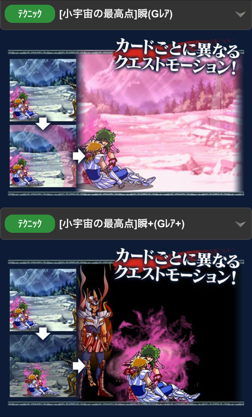 聖闘士星矢 ギャラクシーカードバトル(51) 新ガチャで、GR瞬ちゃんキターーー!…と思ったら、絵柄wwwグリー版と完全一致w(そして必死こいて穫りに行ってた頃が懐かしいw瞬ちゃんの表情はグリ星の方が良いけど、氷河さんの頭の傾き加減はモバ星の方が良い感じですなwちなみにグリ星版はアニメ当時の作画を忠実に再現してるって感じだけど、モバ星は、どのカードもOVA以降の作画で再現してるって感じですね。当時の作画の二人も可愛いけど、モバ星の氷河さんは寝てても美人(惚)って感じ///んで、モーションの方なんですが・・・ 覚醒後、アニメ通りなんだけど、台詞無しにココだけ見てると、兄さんが嫉妬してるようにしか見えないwwでも、モーションの抱えられてる氷河さんがたまらん!////とりあえず、GR氷河さん2種はバザー待機中だけど、この瞬ちゃんもゲットしとくべきか?wでもLoSデッキ組むのに、青銅デッキ解体しちゃったんだよねぇ(苦笑瞬ちゃん活かせるデッキがない。orzあと何気にこの絵柄、過去のSRにありますね。今回のイベ報酬のGR氷河さんの件といい、マジでネタ切れなのか。。。今後、SRがGR化していくんだろうか?(苦笑まぁ、SRなんて特攻切れたら使い道なんてリダカにする位しかないですしね・・・あとは、新人さんにあげたりとか・・・てか、普通にカッコイイ青銅ちゃんGRシリーズで良いんですよ?wGRでネタに走らんでも・・・wまぁモバ星には、今後も頑張って欲しいから、面白ければ何でもいいやww [0回]PR