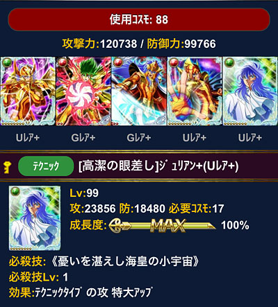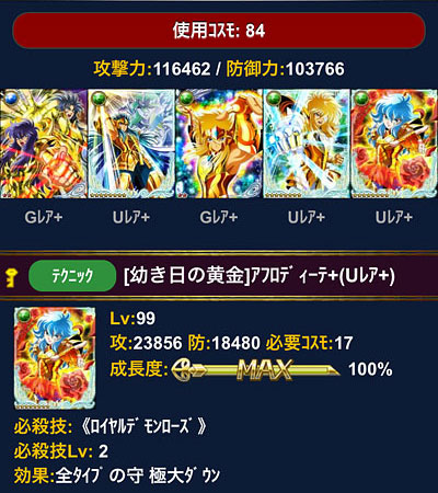 聖闘士星矢 ギャラクシーカードバトル(75) イベお疲れさまでした。イベ長過ぎて、後半はオイラのやる気スイッチがどっかいってしまったよ(爆 バザー漁って、チビアフロさんを覚醒♪チビアフロさん、かわええのう♡見栄えも良いね。 そしてジュリアン様も購入!(何気にチビアフロ様とステ値同じですねw)海デッキに入れたら12万超えキターーー♪(((o(*゚▽゚*)o)))もう、これでイケメン海デッキ完成で良いです(爆あとは育てるだけだな♪ [0回]PR