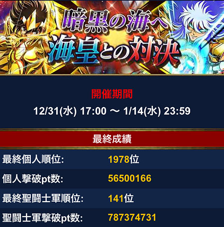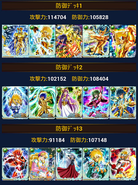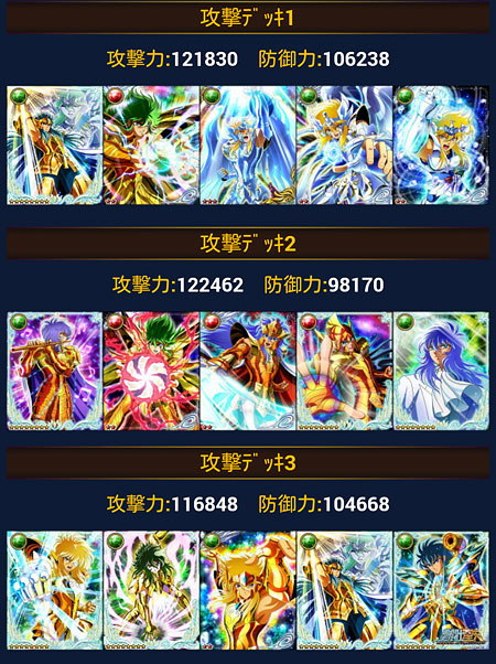聖闘士星矢 ギャラクシーカードバトル(81) 前イベの結果発表。ギリギリ2000位以内でした。そして、GBがまた始まりました。今回は新メンさん多数入軍してくれたお陰で、稼働率が安定しております。その結果、今のところ順調に勝ち進んでおります♪ カードが増えたので、デッキが少し変わりました。LE氷河様解禁まで、あともう少し〜〜〜。もうコレにしか興味がないww [0回]PR
