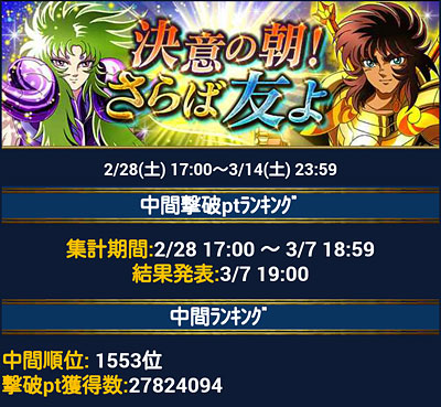 聖闘士星矢 ギャラクシーカードバトル(92) 個玉の中間発表〜!1500位以内逃したww今回はマッタリやってます。イベよりGW重視。知ってる人と対戦すると面白いですね。デッキのお披露目会みたいでwところで、次回GBに向けて、今デッキを少しいじってるんですが・・・ 絵が微妙だから買わなくてもイイかなぁと思っていた、この氷河さん、やっぱり必要かもしれません(爆もうすぐ解禁、安いと良いなぁ(爆 [0回]PR