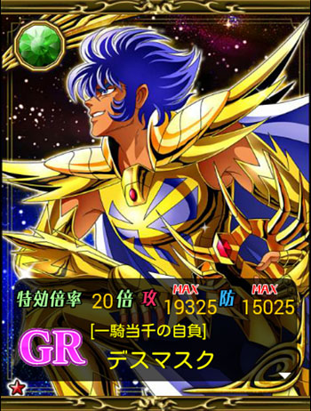 聖闘士星矢 ギャラクシーカードバトル(93) バザー解禁日にGR氷河さん無事ゲット。朝起きて速攻で買ったのですが、あまり出回ってなくてビビリましたねw未覚醒2枚、修復190+200個でした。んで、その日の夜、バザー覗いてみたら覚醒済みばかりで、しかも凄い高騰してて(驚朝のウチに買っておいてヨカッタと思うのでした・・・。絵柄、覚醒前の方が好きだけど・・・このままじゃデッキで使えないので今は覚醒してあります。 覚醒前のモーション。 覚醒後のモーション。 あと今イベのガチャ、デッちゃん男前!!!!!あまりのカッコ良さにお試し100円ガチャリンコしちゃったじゃないかww結果は・・・もはや(以下略これも覚醒前の方が好きですね。十二宮での悪党っぷりを忘れて惚れるレベルですね、マジ(爆GRも覚醒前と覚醒後で絵柄切替出来たら良いのになぁ、と思う今日この頃ですw [0回]PR