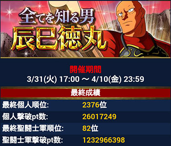 聖闘士星矢 ギャラクシーカードバトル(100) 記念すべき(?)モバ星100記事目は、個玉の結果発表ですwしかも辰巳のイベントwwデイリーミッションは3日目あたりでギブアップしました。そして、もうGBの時期なんですねぇ。他にもやりたい事いっぱいあるのに落ち着かない。 [0回]PR