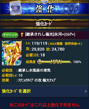 聖闘士星矢 ギャラクシーカードバトル(108) GB特攻氷河さんが、技10になりました♪技1から地道に育てたの、これが3枚目。残りのLE・GRカードも技7〜9で、もうちょいなんだけどね〜今後も技上げは気長にやります。 [0回]PR