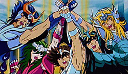 後期オープニング。 聖闘士星矢の後期OP。紫龍さんの髪の毛が見事に氷河さんに被り過ぎで、このシーンを見る度に何とかならんかったのか?と思うw登場順的に、氷河が後ろになるのは仕方ないとして、紫龍さん・・・髪の毛ェ・・・(苦笑 逆にこのカットは、かなりお気に入りのシーンでして。今度出るゲームのPVにも使われてたかな。本当に大好きなシーンなので今でも活かされてて嬉しい。この5人の友情と絆が現れてて、かつ、唯一ハーフである、金髪碧眼な氷河さんがアクセント的存在になってて美しいんですよw聖闘士星矢といえば、やっぱこの5人だなぁと。幽白の蔵馬も言ってたけど、星矢でもメインメンバー誰が欠けても駄目なの。 しかも上記シーンの直後、星矢がウィンクして去っていくものだから、星矢が可愛くて可愛くて…!///Ωが始まった時、正直、星矢より、赤髪でカリスマ性を持った光牙の方が好きだなぁと思ったけど、大人になって旧作を見返してみたら、星矢の可愛さに気付いてしまったw [2回]PR