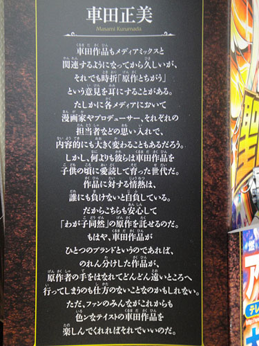 聖闘士星矢 NEXT DIMENSION 冥王神話 6巻 聖闘士星矢 NEXT DIMENSION 冥王神話 6巻星矢NDの残り6巻と7巻を買いに行ったところ、最新刊7巻はあるのだが、6巻がない。密林・楽天・メイト・TSUTAYAにもない。もしかして、どこにも在庫が無い・・・?orz次回の入荷はいつになるか分からないし、このままでは7巻が読めないので、どこかに在庫がないかネットで検索したところ、地元の本屋で1件だけ在庫がありました(ほっ最近は、大きな書店であればネットで在庫検索出来るから便利ですね。しかも取り置きサービスまである。探す手間が省けるのも良し。6巻は、獅子座の黄金聖闘士カイザーの回が面白かった〜。聖なる獅子ゴールディを懐かせる瞬ちゃん最強wwwてか、デカい獅子のゴールディが可愛くて可愛くてヤバい。動物ネタには弱いのよwあと、天馬がやっぱいい性格してるわ。ND読む前はどんな奴なんだろうと思ってたけど、結構好きだわ。そして、蟹座・・・いや、 もはや何も言うまい(笑・・・ 最近、星矢関連でいろいろ動いていますが、やはり好きな作品であれば期待と不安が入り交じるところ。でも、車田先生のお言葉を読んで、もっと気軽に楽しめば良いのかなぁと。逆に生みの親にしか描けないものもあると思うので、星矢NDにはそういうものを期待している。ちなみに星矢NDは、懐かしさと新しさの割合が丁度良い感じで普通に面白い。なので、とりあえず6巻を早く増刷しようか。w [0回]PR