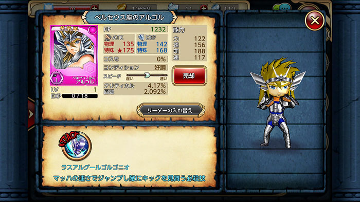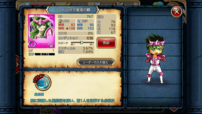聖闘士星矢 すご技パーティバトル(2) モバ星と交互に遊んでますが、キャラが増えてきました。 事前登録でもらった兄さん。原作ベースのゲームなのでオレンジの聖衣。氷河は・・・なのに、兄さんは可愛いじゃねぇかよぉぉw 市センパイw アルゴル。 貴鬼、お前までいるのか! そして、ジュネさん。てか、技名が「瞬 まだ わからないの?」になってるんですけどwww相手が誰であろうと「瞬 まだ わからないの?」って言って攻撃してますww他にも居るんですけど、二軍とか暗黒とかなので省略します。。。早く、黄金聖闘士とか欲しいなぁ〜〜〜♪ [0回]