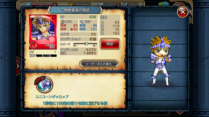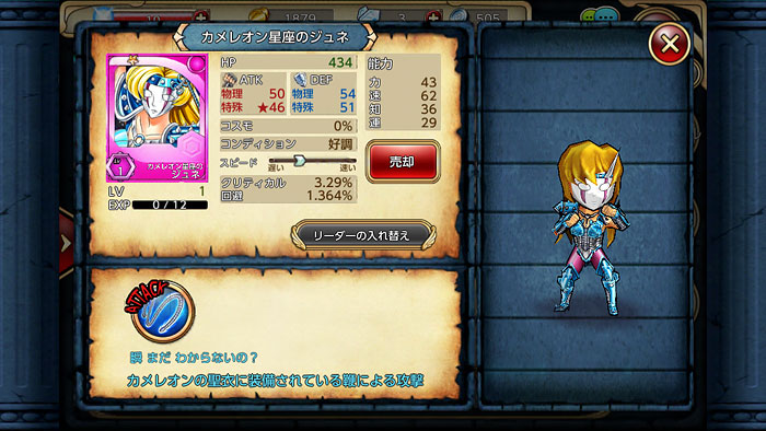 聖闘士星矢 すご技パーティバトル 聖闘士星矢 すご技パーティバトルジャンル:フル3DアクションRPG価格:ダウンロード無料/一部アイテム課金http://seiya-sgbt.jp***星矢の新しいアプリ、気付いたらiOS版も始まっていたのね。ってことで始めてみました。にしても、ロゴや聖衣の感じから原作基準のアプリなんだろうけど、絵柄や髪色がアニメ基準になってて、ごちゃ混ぜなのが何か新しいww 最初に聖闘士を選べと言われるので、モチロン氷河ちゃんで・・・でも、微妙に可愛く無い気が・・・ww ずっとカードバトルものばかりだったから、新しくてイイネ。アクションRPGって言っても操作はカンタン。オートで戦わせることも可能です。 ストーリーモード進めてたら、なんか拾いましたwwパーティは、リーダー+2名まで選べるようです。 ガチャで聖闘士を増やせるので、さらに仲間を増やそうと、黄金ガチャを引いてみたら、この結果よww 教皇ちょっとカッコイイなw 今度は白銀ガチャを引いてみる。星矢ちゃんの色違いが出ましたwブラックペガサスだけど、見た目が星矢ちゃんだから可愛いな。ちょっと暗黒聖闘士率高過ぎ!!…と思ったけど、ヤバイ、このブラックドラゴン、凄く可愛いかもwwこんな感じで、今は微妙なパーティになってますけど、お気に入りのパーティ組めるまで、ちょっと遊んでみようと思います。今の所、そんなにやり込む感じでも無さそうだし、これならモバ星の合間にやるのが丁度良いかも。でも、そろそろソシャゲの時間減らして、家庭用ゲーム機で遊びたいんですけどね(苦笑 [1回]