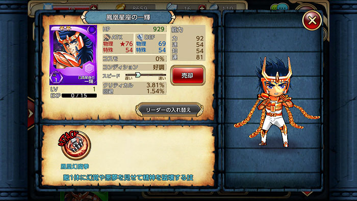 聖闘士星矢 すご技パーティバトル(2) モバ星と交互に遊んでますが、キャラが増えてきました。 事前登録でもらった兄さん。原作ベースのゲームなのでオレンジの聖衣。氷河は・・・なのに、兄さんは可愛いじゃねぇかよぉぉw 市センパイw アルゴル。 貴鬼、お前までいるのか! そして、ジュネさん。てか、技名が「瞬 まだ わからないの?」になってるんですけどwww相手が誰であろうと「瞬 まだ わからないの?」って言って攻撃してますww他にも居るんですけど、二軍とか暗黒とかなので省略します。。。早く、黄金聖闘士とか欲しいなぁ〜〜〜♪ [0回]PR