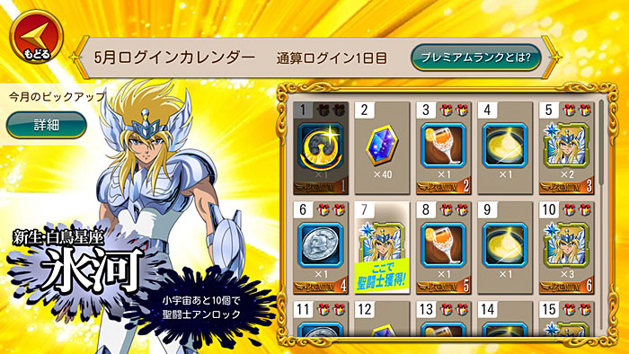 聖闘士星矢 ゾディアック ブレイブ(8) 5月のログインボーナスは、新生・氷河さんだーーー♡もう、日々のプレイがただの作業と化してますが、引き続き頑張ってログインしようwところで、先日はカミュ&氷河のガチャをやっていたし、何でこんなに氷河推しでくるんだろう?ハッ……!まさか、私の趣味がバレてる!?(爆 [0回]PR
